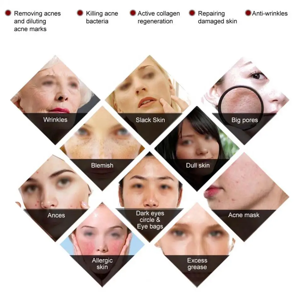 1. Используйте светодиодный светильник s, чтобы излучать определенную длину волны красный синий светильник, непосредственно воздействует на глубокое дно кожи, уничтожает бактерии, снимает воспаление, восстанавливает повреждения ткани, стимулирует слой фасции для получения большого количества коллагена, так что вы можете получить гладкий, нежный, надувной, Яркая и здоровая кожа.