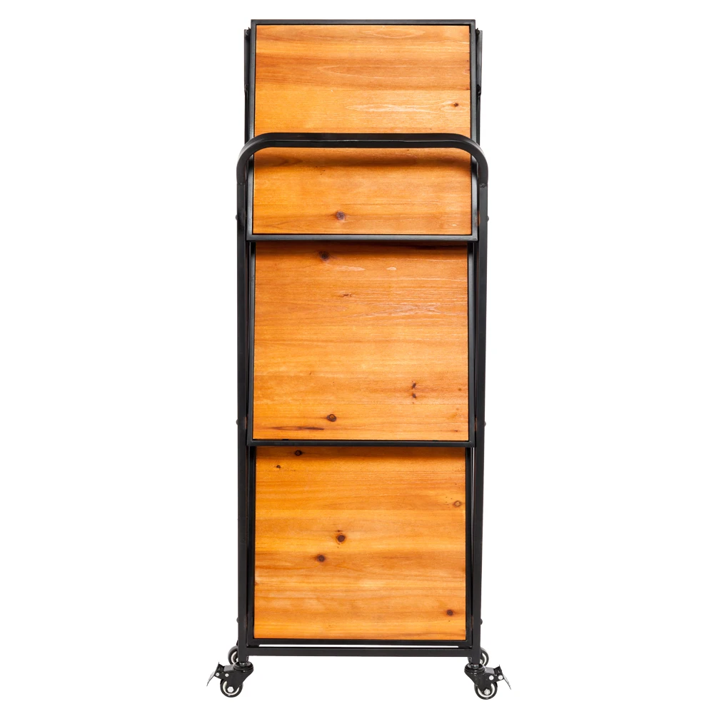 Эта легко перемещаемая тележка позволяет перемещаться с вечерние нкой с четырьмя колесиками для бесшовной мобильности. Эта Многофункциональная Корзина добавит дополнительный объем и место для хранения в вашем доме. Благодаря трехуровневому черному металлическому дизайну с открытым стеллажом этот предмет придаст Вашему облику винтажный внешний вид с открытой фурнитурой и ощущением В индустриальном стиле. Прекрасное сочетание железных и деревянных полок добавит элегантности и функциональности в любую комнату. Придайте тепла и стиля вашему дому с индустриальным дизайном многофункциональной тележки.