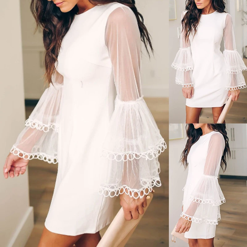* Описание товара: модное женское кружевное сексуальное платье с рукавами-колокольчиками на каждый день для коктейльной вечеринки