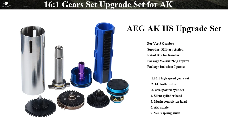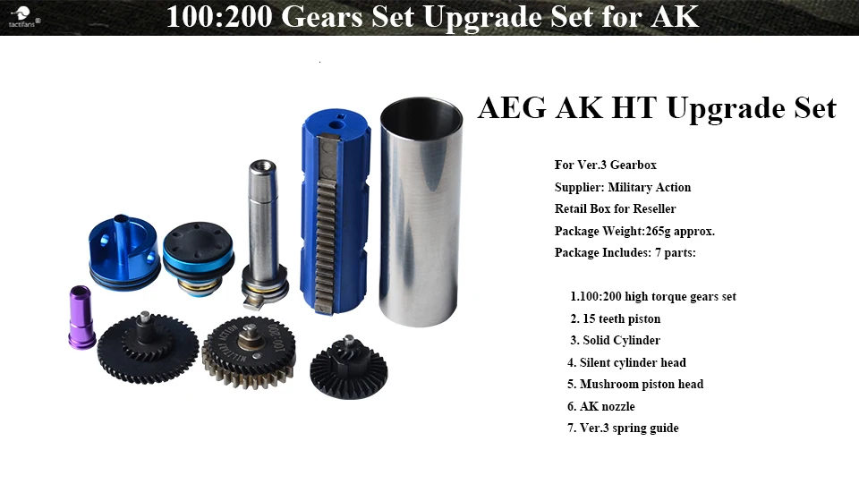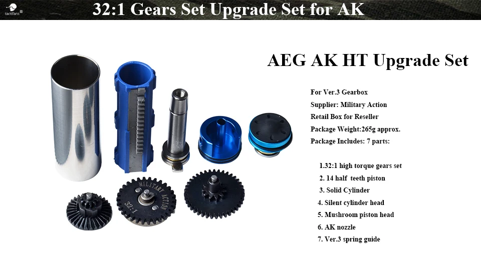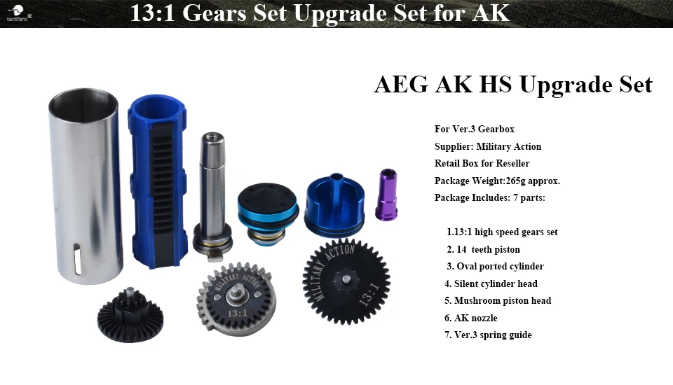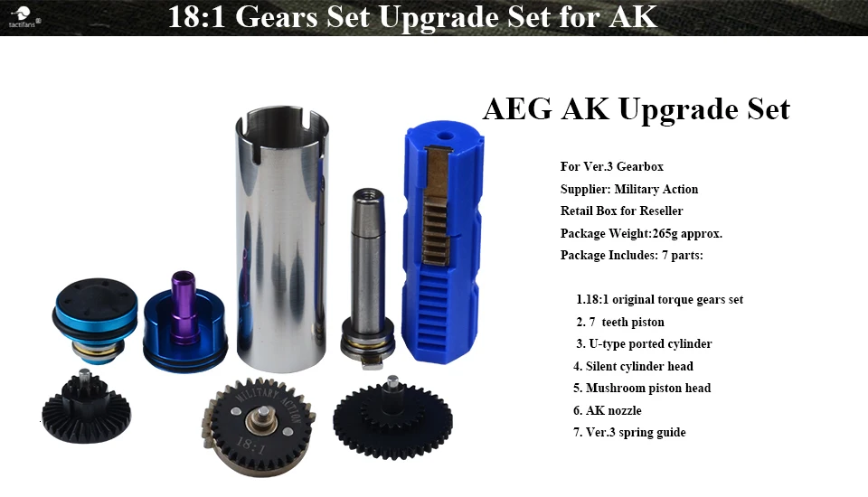 Пейнтбол Охота AEG обновления наборы высокоскоростной Крутящий момент шестерни портированный твердый цилиндр поршень бесшумный Гриб головкой Ver.3 коробка передач AK