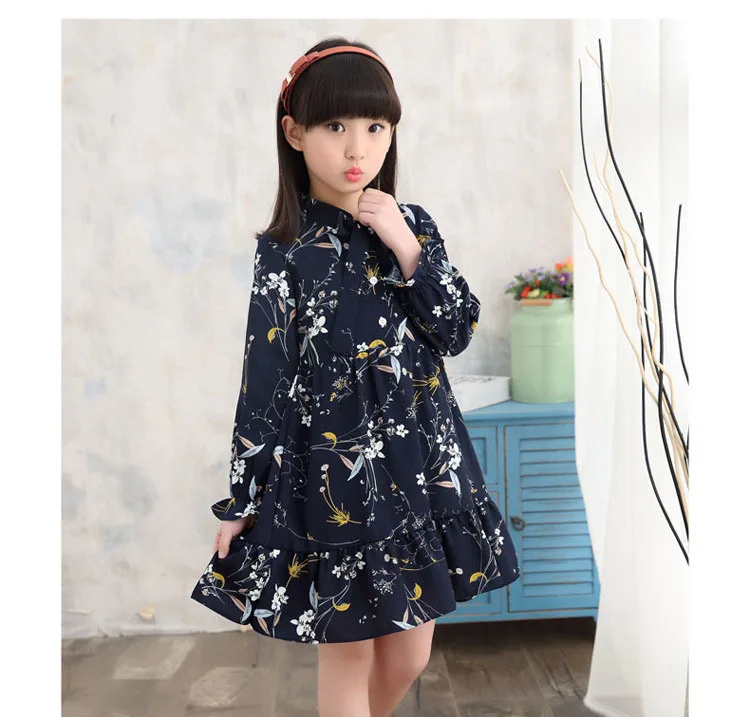 Шифоновое платье для девочек; Одежда с длинными рукавами; Платье принцессы с цветочным принтом; Вечерние платья для девочек; Одежда для девочек; Сезон осень; 2019Одежда для маленьких девочек 4, 5, 6, 7, 8, 9, 10, 11, 12, 13, 14, 15 лет платье с цветочным рисунком для девочек
