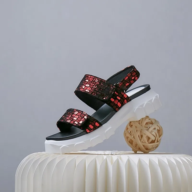 Женские босоножки на плоской платформе; сезон лето; шикарная обувь из натуральной кожи с открытым носком; Новинка; Повседневная Удобная женская обувь; Цвет серебристый, красный; F006