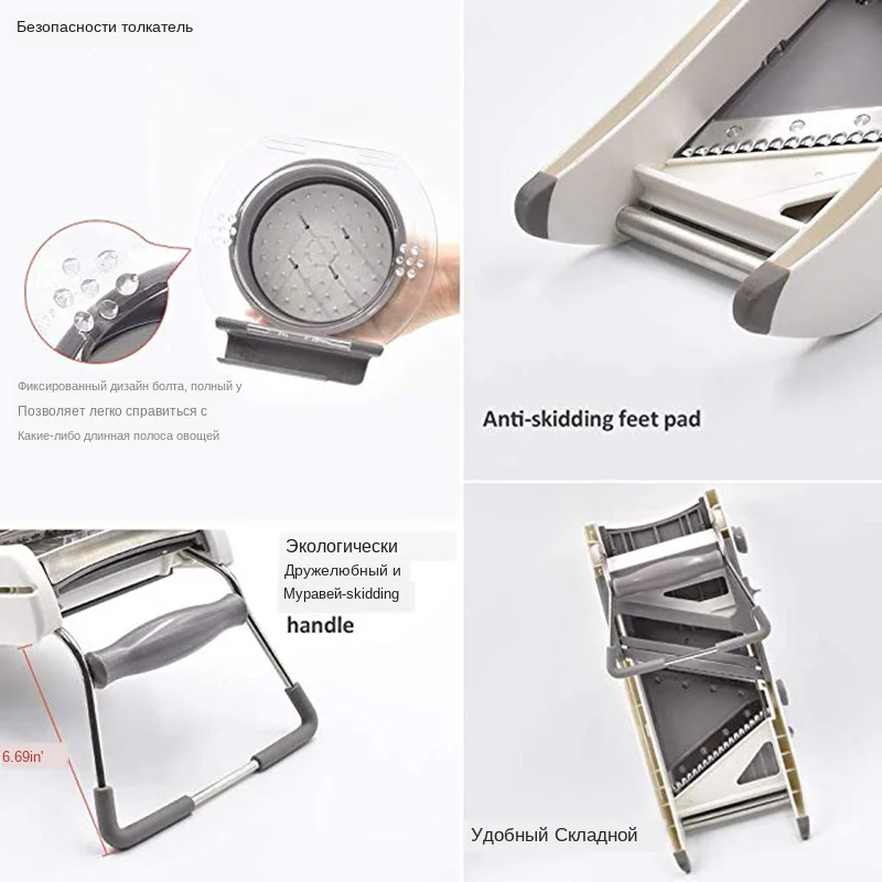Главные особенности: Безопасные пищевые экологически чистые материалы, нетоксичные и безвкусные -Пищевая клюшка может повысить эффективность работы и избежать порезов -Мультифунциональная мандолиновая овощерезка нарезает 18 различных размеров и ломтиков -Идеально подходит для огурцов, моркови, имбиря, чеснока, лука, картофеля, лимонов и т. Д. Материал: АБС, нержавеющая сталь Вес изделия: 1,0250 кг Размер посылка (ширина x высота): 1,00x1,00x1,00 см/0,39x0,39x0,39 дюйма Посылка в комплект входит: 1 x многоцелевой Овощи Фрукты Slicer), руководство пользователя (1 шт.)
