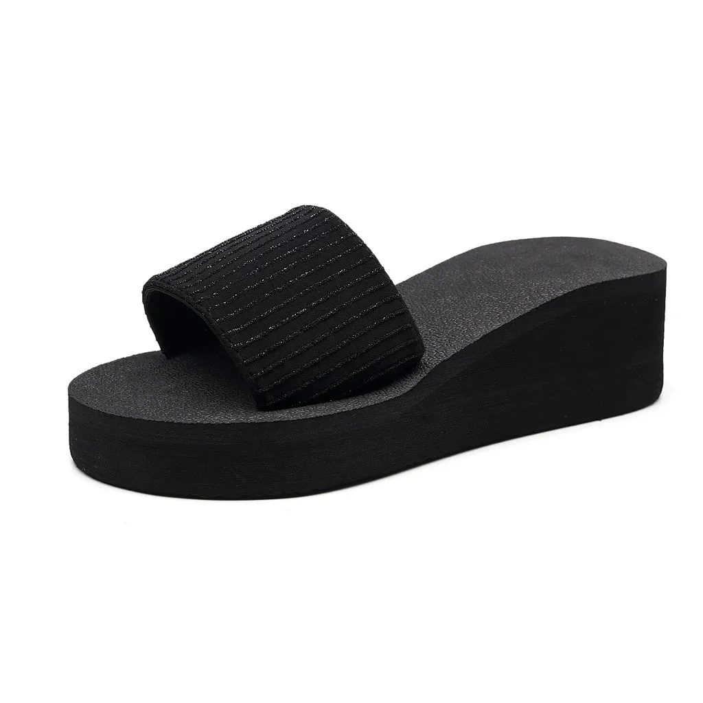 Женские летние богемные модные Нескользящие шлепанцы на танкетке с открытым носком; Пляжная обувь с блестками