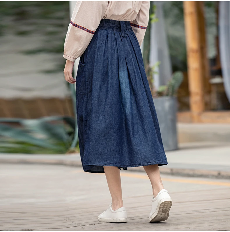 Хорошее качество 2021 размера плюс плиссированная джинсовая юбка женская Повседневная Длинная юбка пачка Высокая талия Harajuku джинсовая юбка летняя одежда