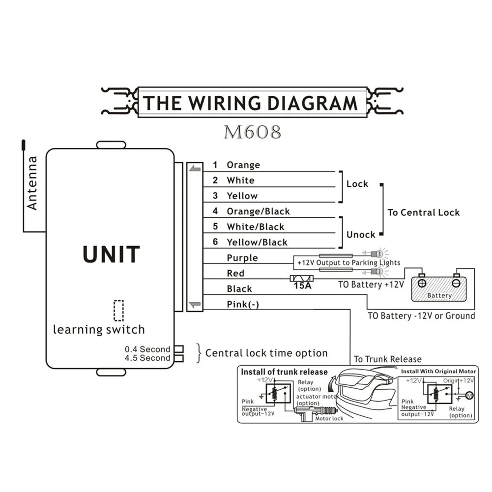 Об установке: Продукт должен быть установлен професионами с автомобильным электриком сертифицирован Для 12 В постоянного тока автомобиля, который имеет центральный дверной замок Деталь без привода центрального замка двери