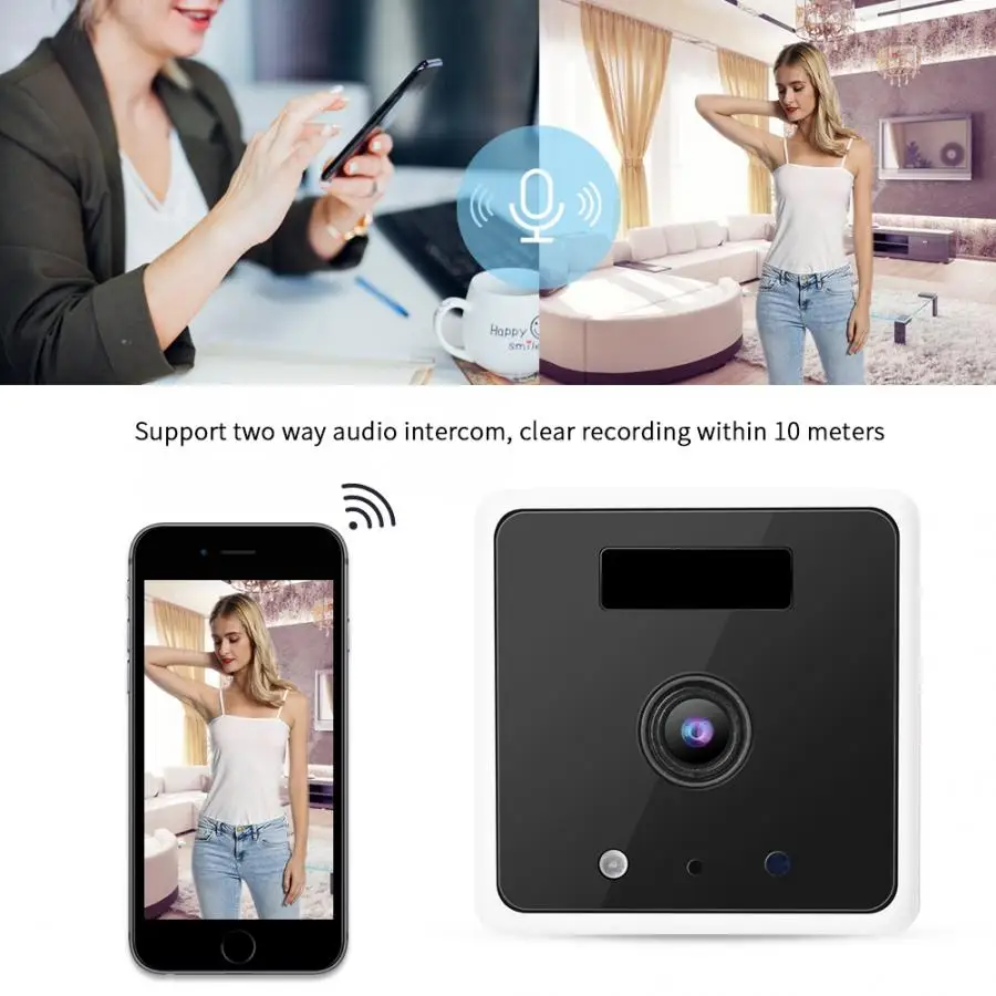 С инфракрасным светом. Когда окружающий свет недостаточен, используйте инфракрасный свет для увеличения яркости окружающей среды. Поддержка двустороннего аудио домофона, четкая запись в пределах 10 метров. Индукция человеческого тела. Когда тело человека движется перед устройством, он может генерировать триггер сигнала на мобильный телефон. Беспроводное подключение Wi-Fi, без вилки и без провода, удобно использовать. С высокой емкостью полимерной литиевой батареи, супер длительный срок службы в течение 30 дней.