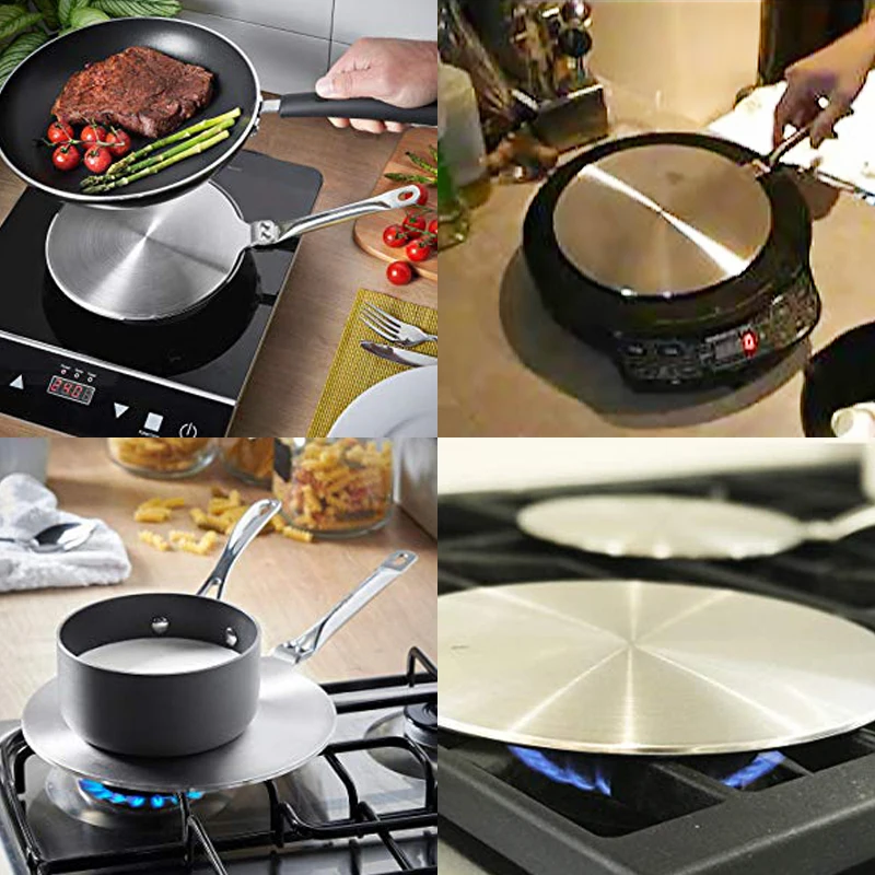 Индукционная посуда RAINBEAM: индукционный диффузор позволяет избежать перегрева пищи, например, помогает вам в приготовлении чувствительных предметов, таких как карамель, рис, овес и соусы. Потому что он может поглощать и распределять тепло равномерно над кастрюлей. Энергосбережение: вы можете использовать все ваши кастрюли на большинстве индукционных плит с нашими продуктами. Это не только сохранит ваше кухонное пространство, но и позволит избежать ненужных затрат на дорогие сковородки. Может использоваться с газовой или электрической плитой. Потратьте несколько долларов на счет газа и энергии, перейдя на Индукционное приготовление. Более вкусно: сила индукционного приготовления заключается в том, что он контролирует тепло на вашей еде, поэтому он распределяет ее равномерно по сковороде или кастрюле без перегрева или сжигания определенных областей. Это улучшит качество вашей готовки и вкус пищи. Нержавеющая сталь и алюминий: идеальный дизайн диска теплового диффузора состоит из трех слоев, верхний и нижний слои-из нержавеющей стали, средний-из алюминия для лучшего распределения тепла. Стабилизатор для газовой варочной панели: идеальный кухонный гаджет для плиты, независимо от того, насколько мала сковорода. Длинный теплозащитное ручка делают его удобным для вас, чтобы использовать его без каких-либо опасности горения самостоятельно. И вы также можете повесить его рядом с вашей плитой для легкого и быстрого доступа.