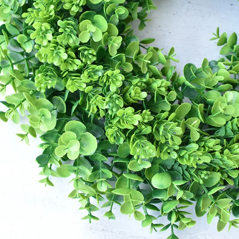 Красивый зеленый венок-этот зеленый венок окружен искусственными листьями эвкалипта, простой элегантный и удобный цвет, яркая естественная форма, дарящая людям художественные романтические чувства. Добавьте свежую весеннюю атмосферу в любую комнату с нашим художественным венком в течение всего года.