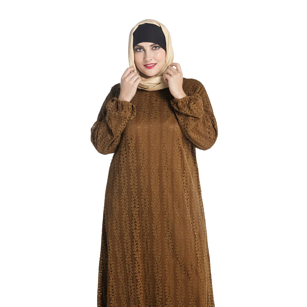 Vintage Women Islamic Muslim Dress Abaya Kaftan Long sleeve Plus Size Robe
