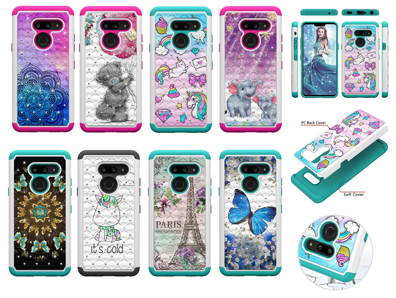 1. Двухслойная защита: жесткий пластиковый внешний корпус и мягкий силиконовый внутренний корпус не только обеспечивают прочность вашего телефона, но и защищают его от падения, шокирования и царапин. 2. Современный и модный дизайн, популярные элементы, Алмазный 3D красочный узор, делает ваш телефон другим и Попрощайтесь с простым и тусклым корпусом! 3. Тонкий фитинг, легкий и удобный доступ ко всем функциям, камерам, кнопкам и портам.