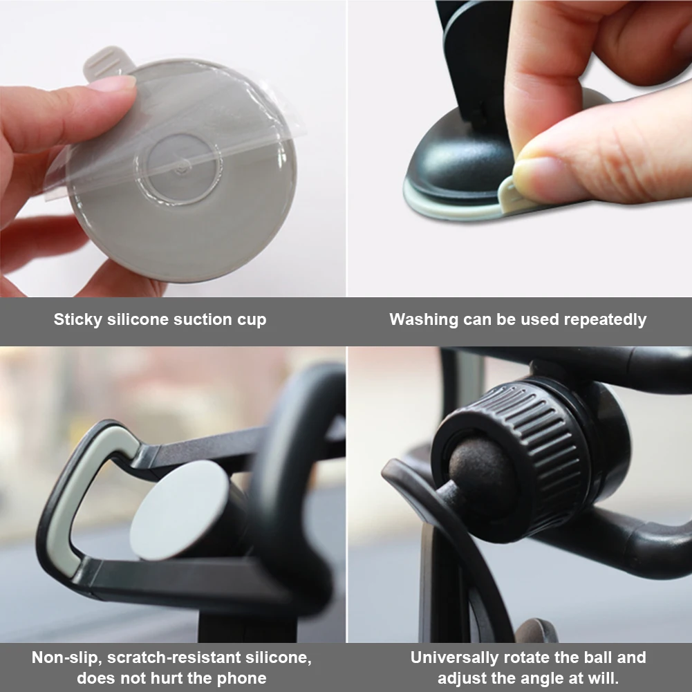 2. Базовое дно легко крепится к прибору или ветровому стеклу с помощью гелевой накладки на присоске; Обеспечивает сильное всасывание и не оставляет следов позади.
