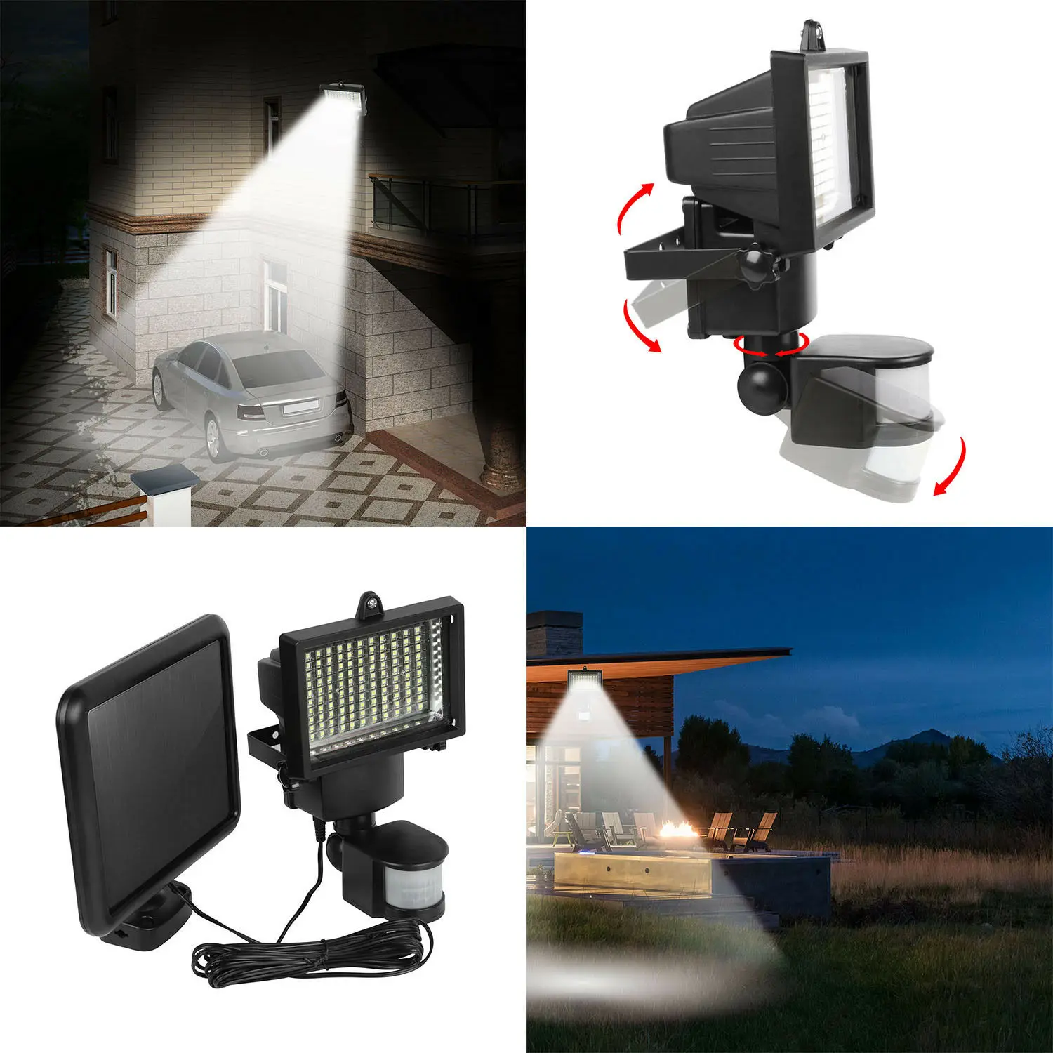 100-светодиодный Pir датчик Активированный солнечный светильник безопасностиЭтот motion Активированный светильник со встроенным 100 светодиодный, которая производит 1000 люмен отлично подходит для светильник ing и обеспечения безопасности и зарядкой от USB на подъездных дорожек к дому, вместо того, чтобы сделать патио, и задней панели. Он автоматически включается после обнаружения движения с расстояния до 8 м/26,2 фута. И вы можете легко регулировать дальность обнаружения, светильник продолжительность и наружный светильник уровне циферблаты-молния на спине. Вращающийся светильник позволит вам прицелиться там, где вам нужен светильник, самая большая и вращающаяся солнечная панель позволяет прицелиться туда, где можно получить максимальный солнечный светильник.