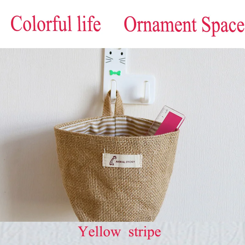 Hello! Welcome to our store! Quality is the first with best service. customers all are our friends. Fashion design,100% Brand New,high quality! DESCRIBE: Material: Jute Color: Yellow stripe, Yellow dot,Blue stripe, Blue dot Style: Storage Bags Size: