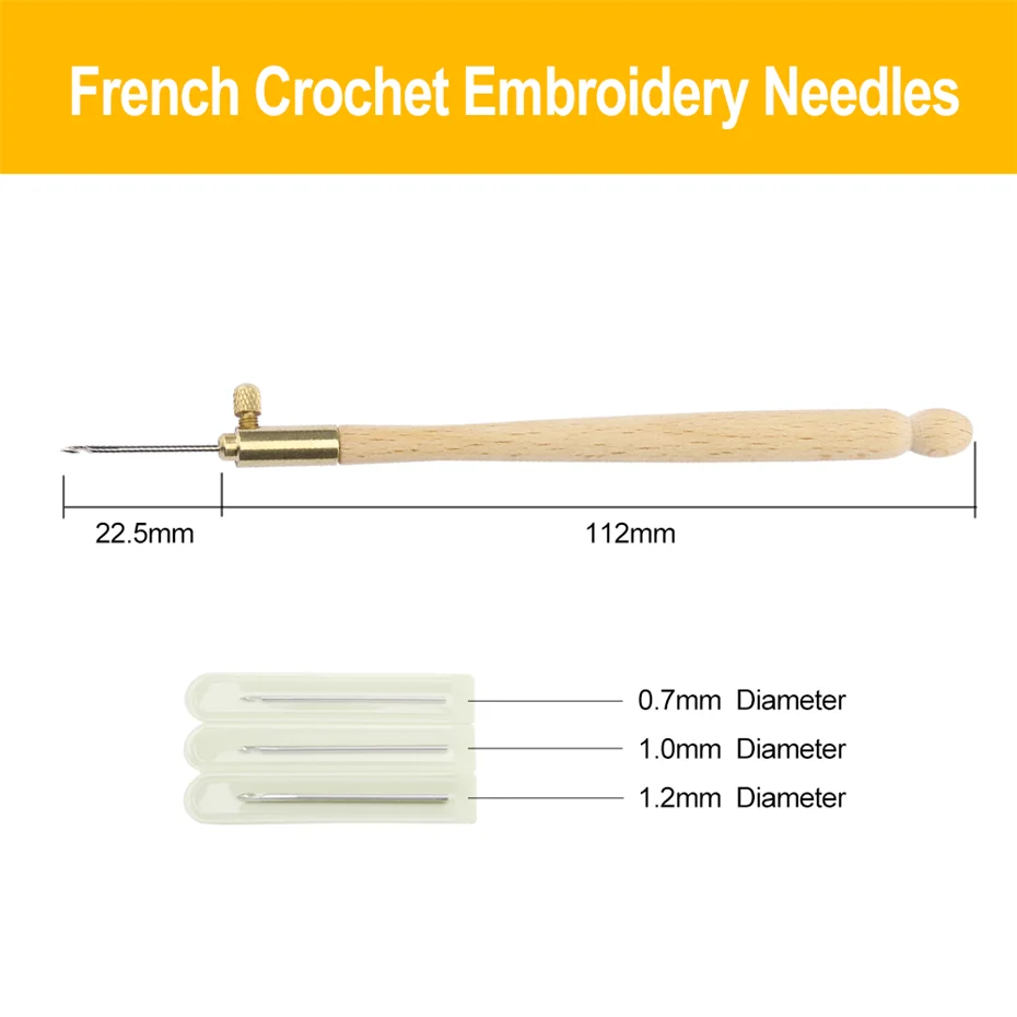Деревянная ручка крючком крюк с 3 иглы французский вязание крючком вышивка бисером обруч набор швейных инструментов DIY ремесло