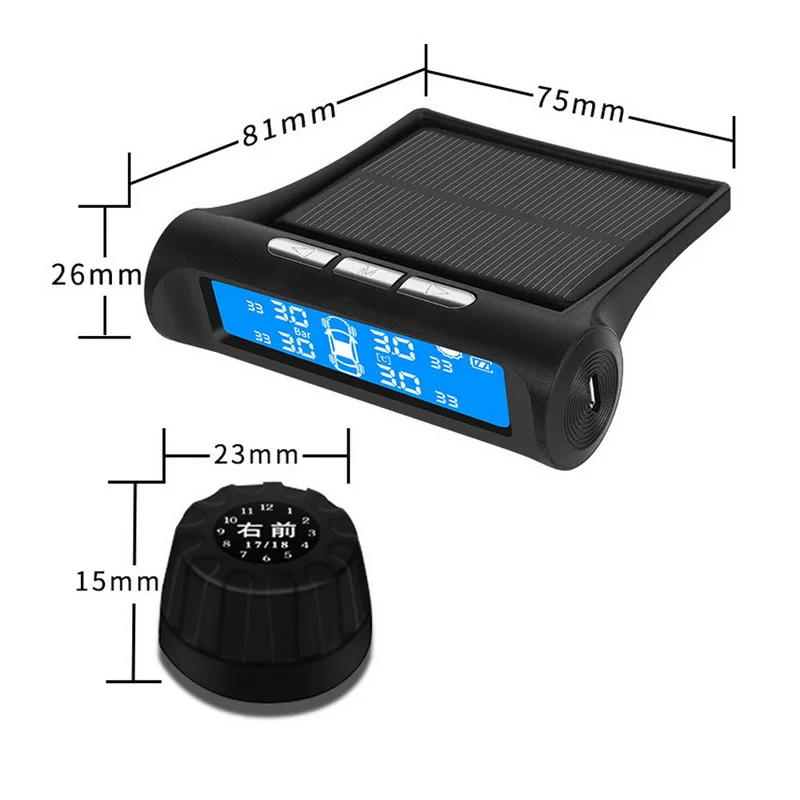 1. Давление или температура в режиме реального времени: обеспечивает этот мониторинг одновременно и обеспечивает визуальный ЖК-дисплей и звуковой сигнал тревоги сразу же, когда превышают пороги давления или температуры в шинах.