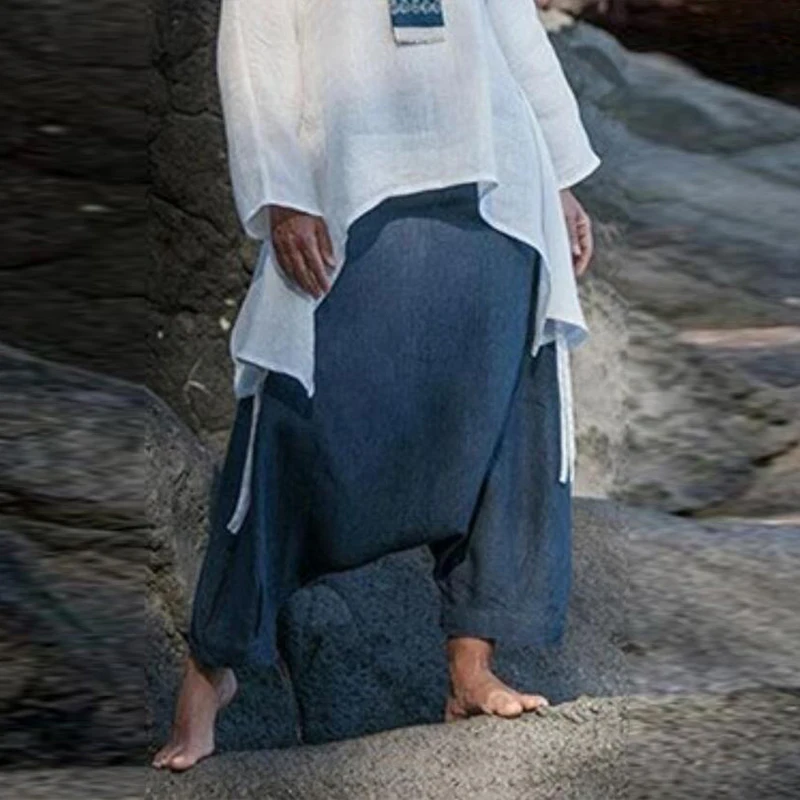 * Описание товара: Брюки-шаровары с заниженным шаговым швомБольшой размер, широкие штанины, высокая талия