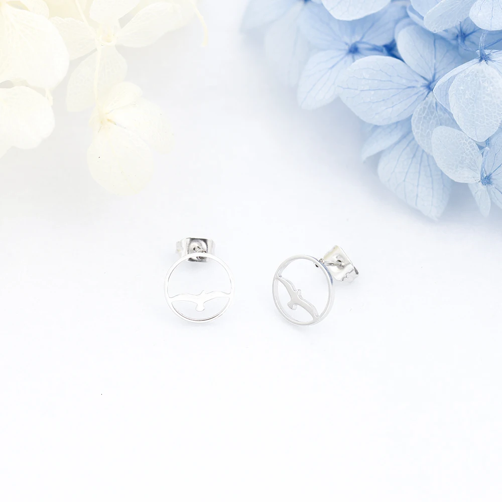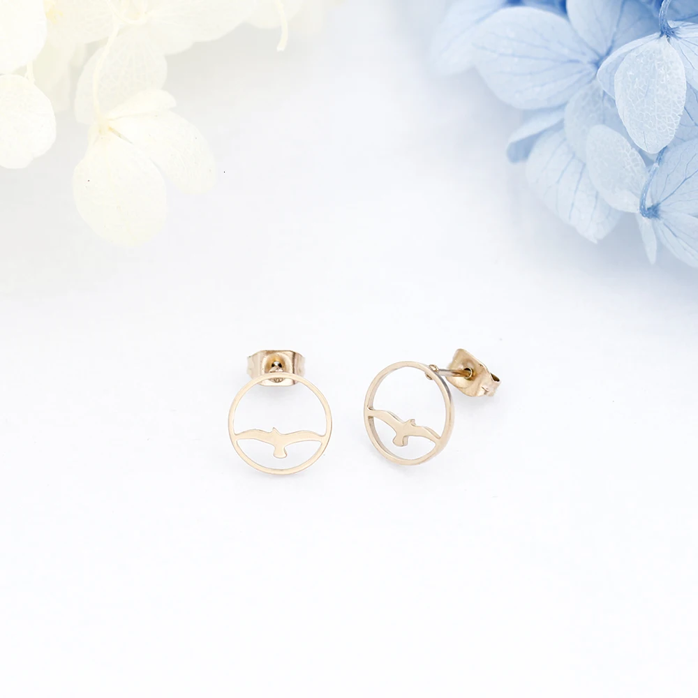 Простые золотые серьги-гвоздики в форме чайки для женщин и девушек, ювелирные изделия из нержавеющей стали, милые маленькие серьги в виде птички