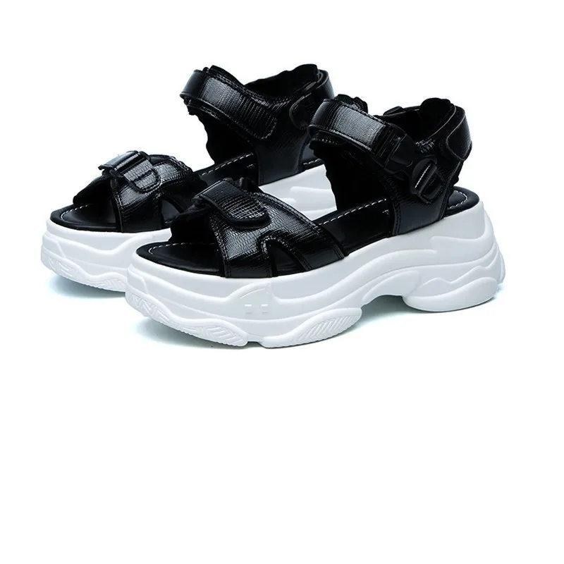 Женские босоножки на платформе; Летняя женская обувь с ремешком на щиколотке; Новинка 2019 года; повседневная обувь; модные блестящие женские Босоножки с открытым носком; цвет черный, серебристый; E052