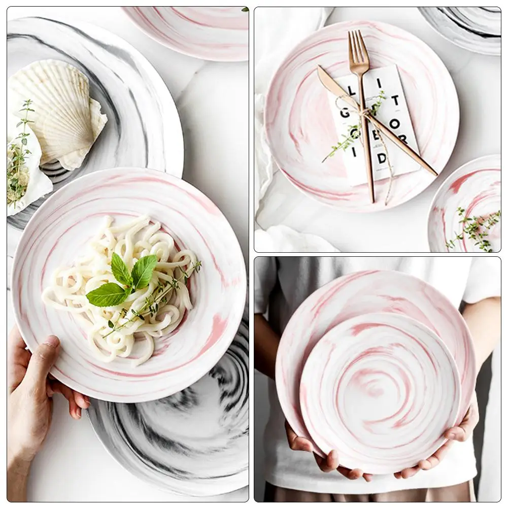 Керамическая тарелка для завтрака, тарелка с мраморным узором, инновационный набор посуды, легкий стейк, Западная тарелка для торта, Скандинавская Бытовая Посуда для кемпинга, безопасная для посудомоечной машины