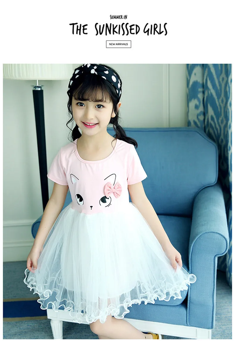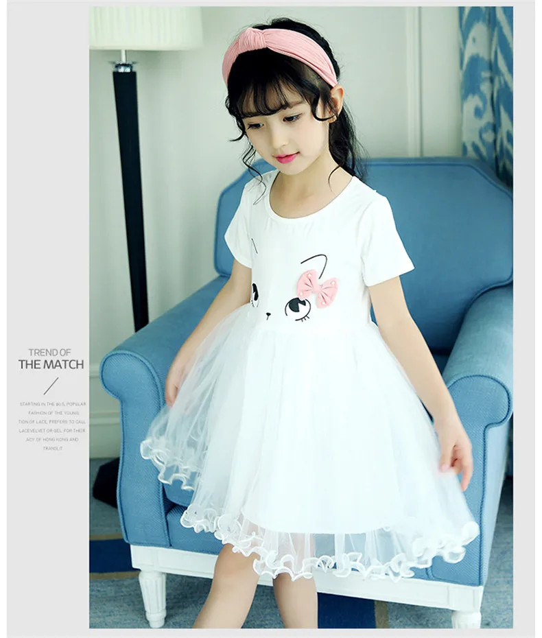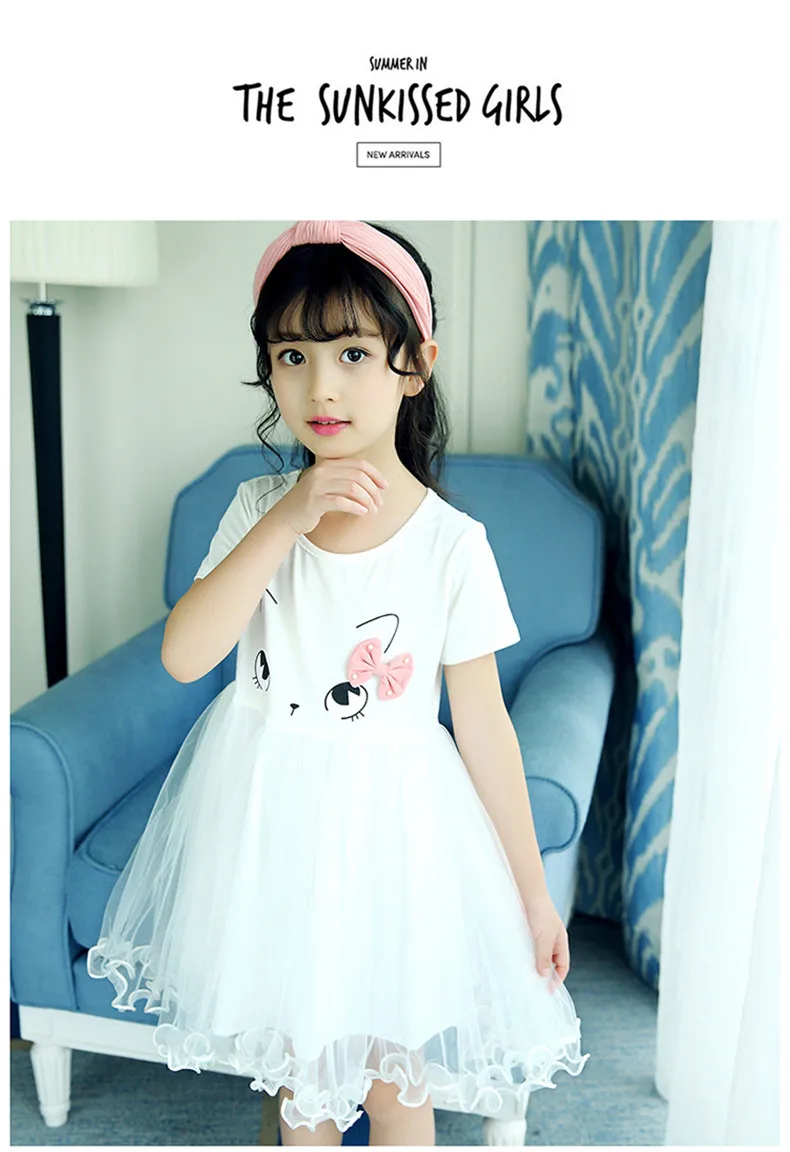 Kids Dresses for Girls White Princess Robe Vestido Infantil Baby Clothes Party Fille Robe Animal Print Modis Summer Dress 2019