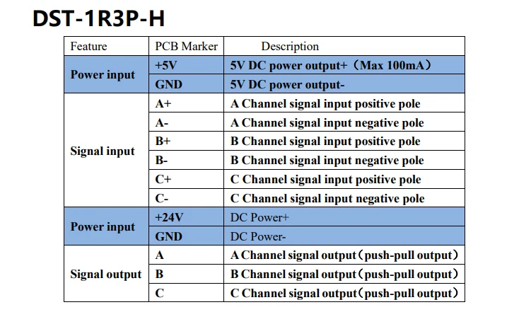 Эта модель является DST-1 R 3 P-H. Анализ модели: DST (цифровой преобразователь сигнала) - 1 R (односторонняя передача) 3 P (3 канала) - H (высокая скорость преобразования). Особенности 1. Преобразуйте дифференциальный сигнал в выходной сигнал коллектора, 3 канала и электрически Изолируйте вход и выход. 2. Предельная Рабочая частота составляет 2 М Гц. Кодировщик сигнала для дифференциального выхода --> P LC Высокая скорость подсчета номера интерфейса. 3. Режим вывода: принимает режим вывода push-pull, поддерживает интерфейс P LC входного сигнала N P N или P NP. 4, встроенный модуль преобразования напряжения, может выводить 5 В, 100 м A (максимум), блок питания для модуля линейки решетки. 5. Установка: D в 35 мм железнодорожная установка, удобная и быстрая! 6, Размеры модуля: 85*48*28 мм (длина * ширина * высота). Примечание: Этот модуль обеспечивает выход 5 В, 100 м A (максимум). Обратите внимание, что устройство генерации дифференциального сигнала требует 5 В. В противном случае он остается неподключенным (например, Серводвигатель). Когда устройство генерации дифференциального сигнала использует большое количество мощности (например, мощные решетки), оно должно быть приведено в действие модулем питания от 24 В до 5 В.