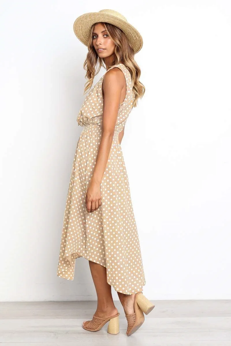 Женское винтажное платье в горошек Echoine, асимметричное длинное платье с круглым вырезом без бретелек, пляжное платье большого размера, 3 цвета