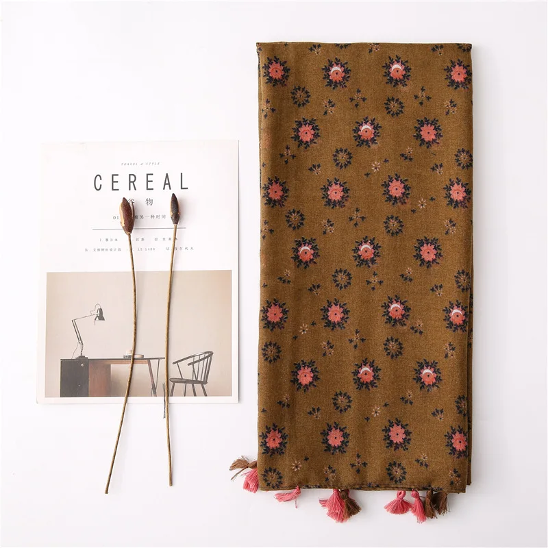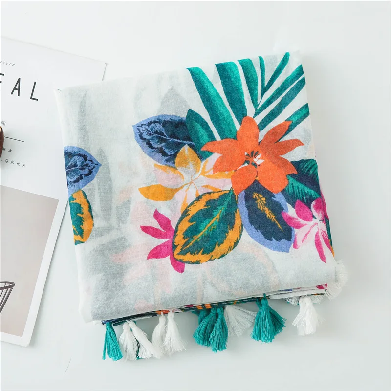 Описание товара: Модный летний женский шарф VISROVER, роскошная брендовая шаль, пляжный шарф с кисточками, накидка, шарф с цветочным принтом Hijiab