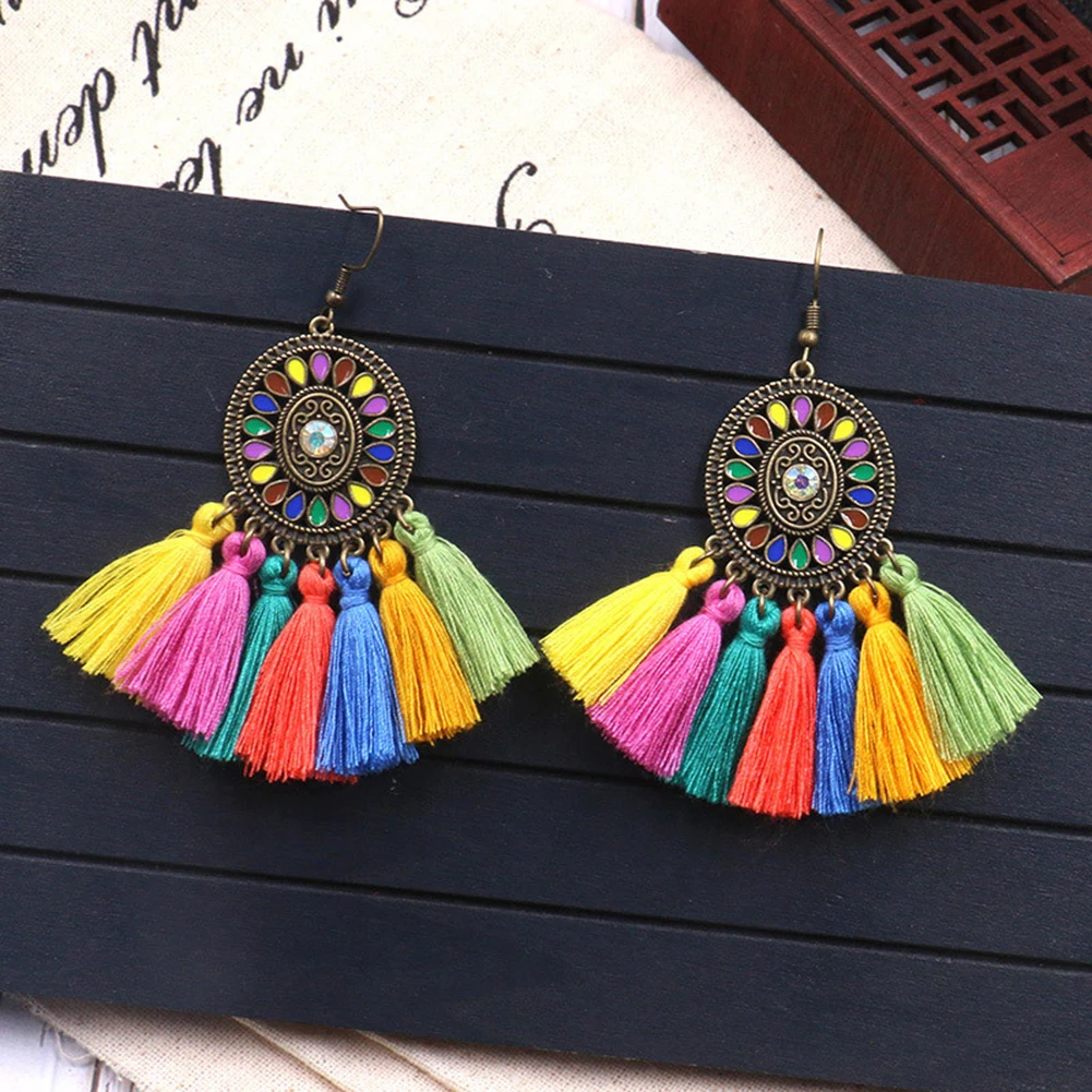 Многоцветные женские полые круглые серьги с кисточками и бахромой Винтажные Ювелирные Изделия