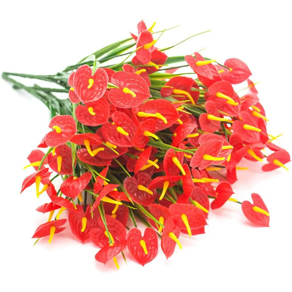 (Легко ухаживать)-искусственные антуриевые растения, солнечный свет весны для вас в любое время, без осени и никогда не увядает. Эти пластиковые цветы никогда не отмернут и легко позаботятся о них против ожесточенного шторма ветра и инсоляции.