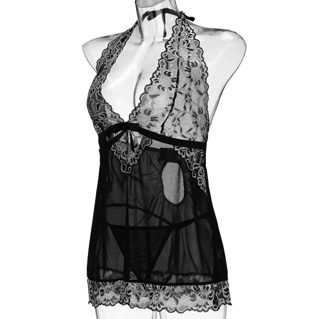1.Женское нижнее белье с глубоким v-образным вырезом, кружевной сетчатый прозрачный комплект babydoll с стринги с цветочными кружевными чашками