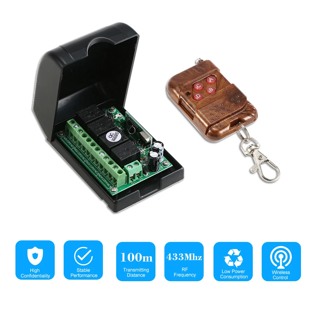 * Он может подключаться к электронному замку управления, светильник, вентилятор, окно, занавес, двигатель, автомобиль, подъемное устройство, управление двигателем, управление подъемником или другие приборы с AC85V-250V или DC12V. Чтобы он мог дистанционно разблокировать дверь, закрыть светильник, открыть или закрыть занавеску и т. д.