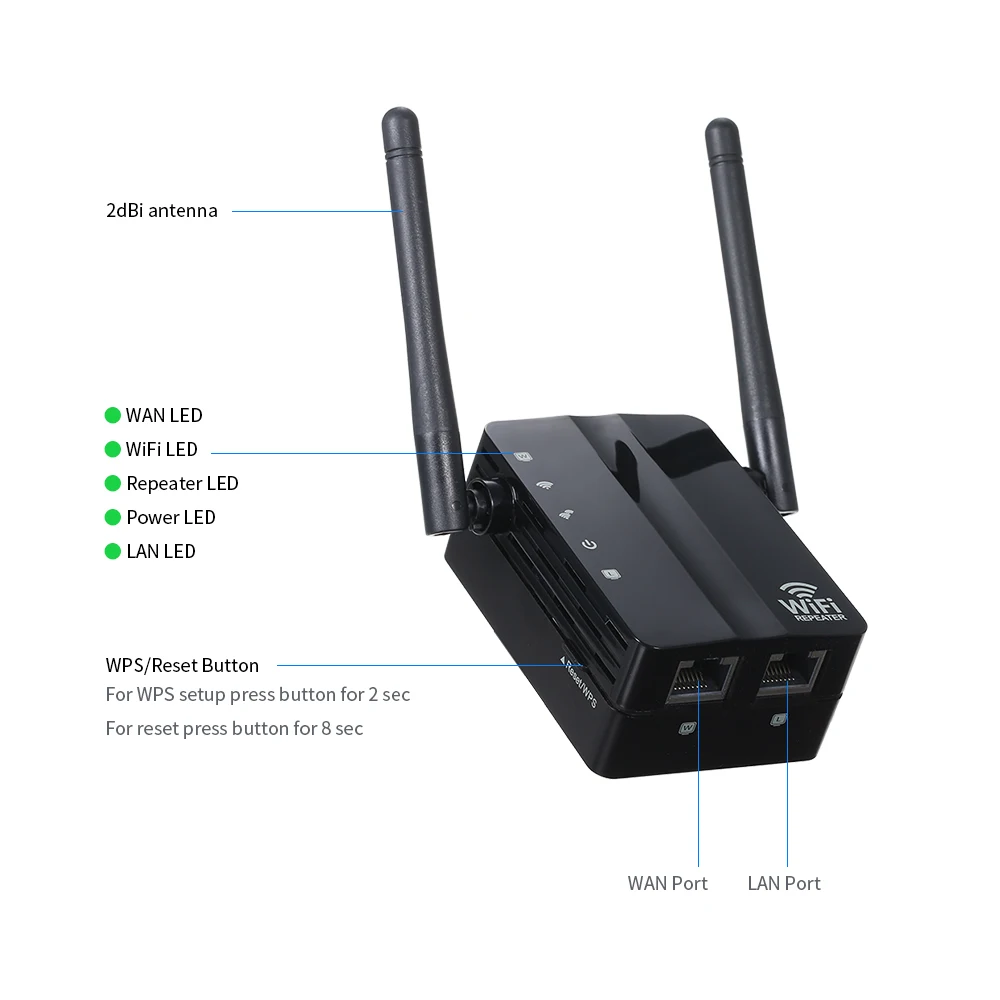 Оснащен 2 антеннами с высоким коэффициентом усиления, ретранслятор имеет высокую производительность приема и передачи сигнала. Увеличьте сигнал Wi-Fi до 300 Мбит/с. Пусть WiFi покрывает все уголки вашего дома.