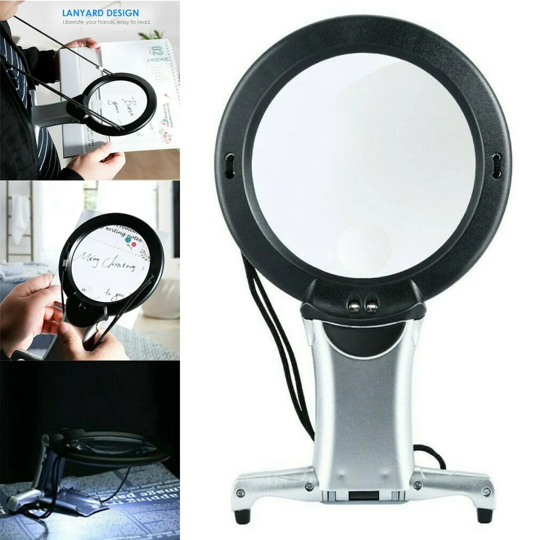 6X БОЛЬШОЙ увеличительное стекло с светодиодный светильник Hands Free Чтение Лупа светильник светодиодный светильник гигантская Лупа Чтение Hands FreeUS $12,02