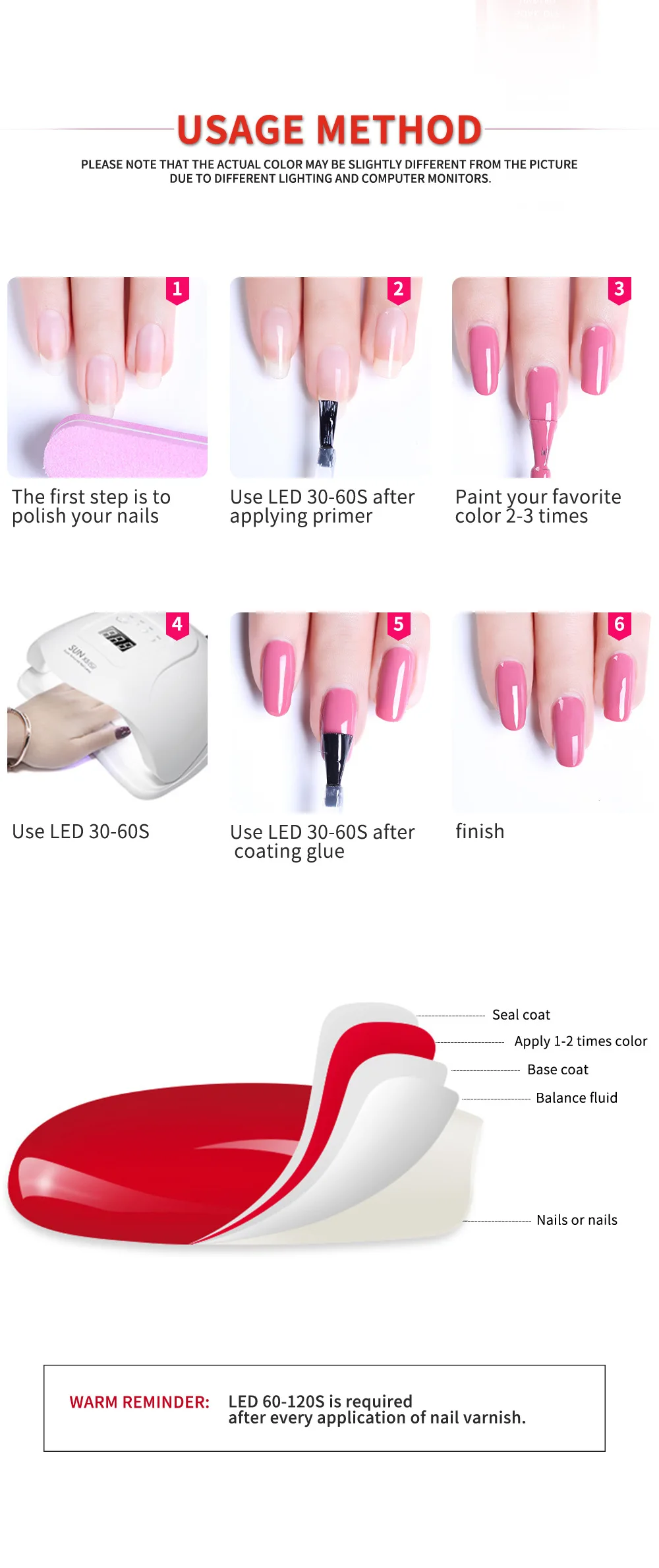Особенности: -Профессиональный подарок для ногтей для себя или вашей девушки -Лучший контроль качества для обеспечения высокого качества полировки -Как полировка, носит как гель, выключается в считанные минуты -Он предлагает самый широкий цветовой диапазон для клиентов, чтобы испытать профессиональное впитывание ногтей по разумной цене -Длительный срок службы не менее 14 дней, фантастические и супер яркие ногти для вас. -Нет более неидеальной поверхности, вмятин или гвоздей. Устойчивость к цвету, гибкая и блестящая устойчивость к любым испытаниям Детали: 7,3 мл./шт. Шаг за шагом: 1.-форма ногтя. Слегка смочите поверхность ногтевой пластины. Дезинфицировать. 2.-нанесите тонкое покрытие основы от кутикулы до свободного края (не забудьте запечатать край ногтя). Высушите ногти под светодиодный светильник в течение 10 секунд или УФ-светильник в течение 2 минут. 3. Нанесите тонкое пальто отмачиваемого геля на выбор. Свободный край крышки. Лечение: 30 секунд в светодиодный светильник, или 2 минуты в УФ-лампе. 4.-Повторите 2-е тонкое покрытие отмачиваемого гель-лака на ногти. Высушите под светодиодный лампой в течение 30 секунд или УФ-светильник в течение 2 минут. 5. Нанесите тонкое пальто сверху. Свободный край крышки. Лечение: 30 секунд в светодиодный светильник. 6.-удалите липкий остаток на ногтях с помощью очищающего средства. Затем нанесите питающее масло кутикулы для увлажнения влаги в кутикулу и кожу вокруг ногтя. Для удаления: -1. Замочите ногти в акриловое средство для удаления около 5 минут, -2. Аккуратно Наденьте на каждый ноготь всю эмаль для ногтей.