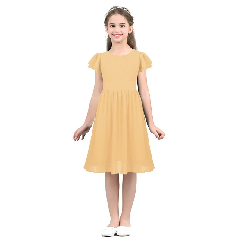 Детское многослойное плиссированное платье с короткими рукавами и круглым вырезом для девочек; платье с цветочным узором для девочек; платье принцессы для свадебного торжества; платье для дня рождения