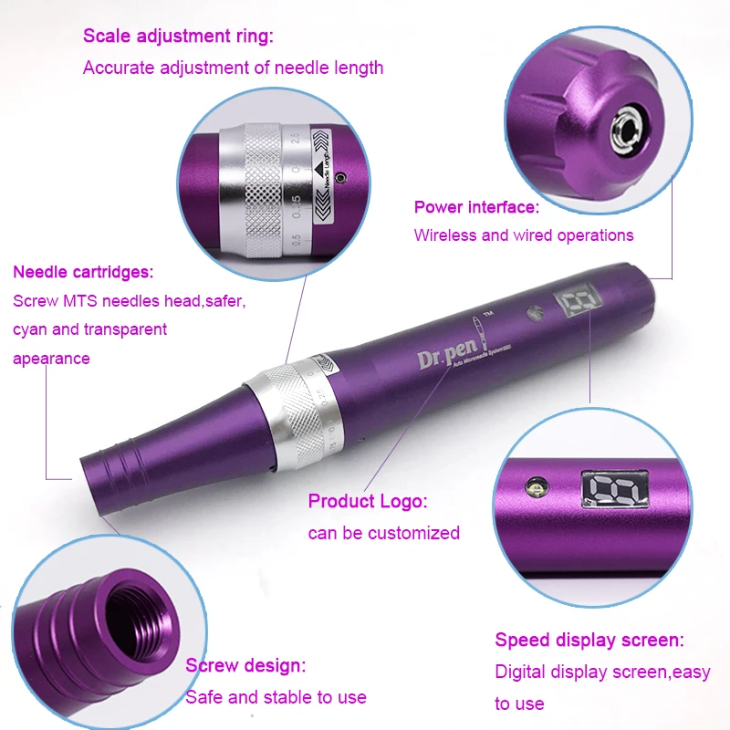 Скоростной Двигатель: макс. об/мин Материал: металлический фиолетовый корпус Скорость: 5 уровней Длина иглы: 0,25 мм Источник питания: перезаряжаемый аккумулятор 1000 мА Сертификат: CE, ISO13485 Экран цифрового дисплея