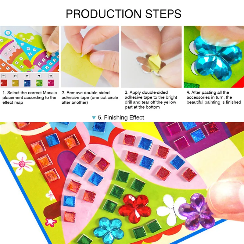 Особенности: 100% Фирменная Новинка! 3D пены липкие Мозаика Мозаика по номерам Очистка и палочка для создания Каждая картина имеет отдельный пакет, отличный подарок для ваших детей. Название: мозаика наклейки Размеры: 23,5*16,5 см Посылка: 12 шт./компл.