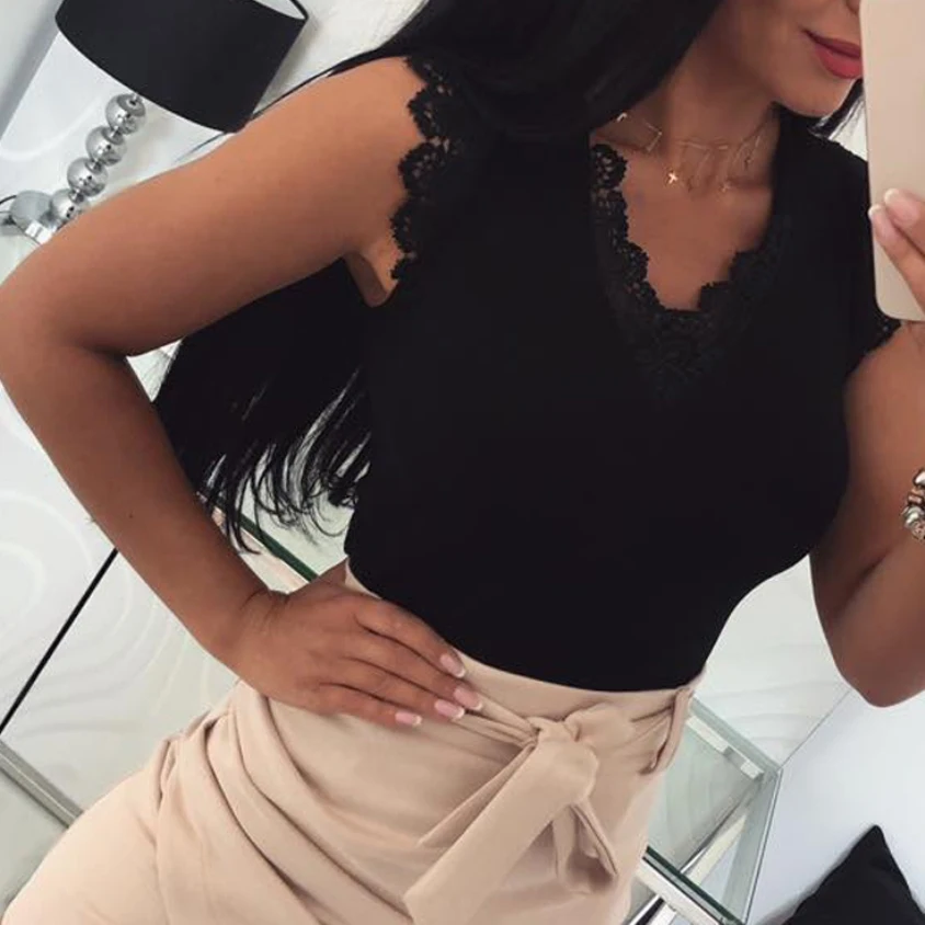 Женский кружевной жилет без рукавов OL Повседневный Топ на бретелях Блузка футболка!