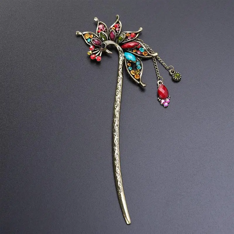 Ретро элегантная заколка для волос с павлином, винтажная модная заколка для волос в китайском стиле, классические палочки для волос с кристаллами и кисточками для женщин