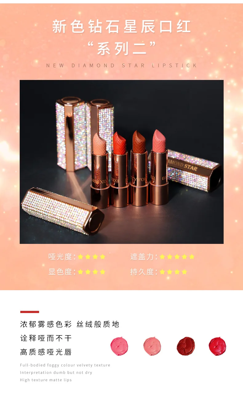 Xixi diamond star губная помада, высокое качество, молочный чай, сексуальный красный пигмент, водонепроницаемый, длинный, прочный, матовая, телесная помада, AC075