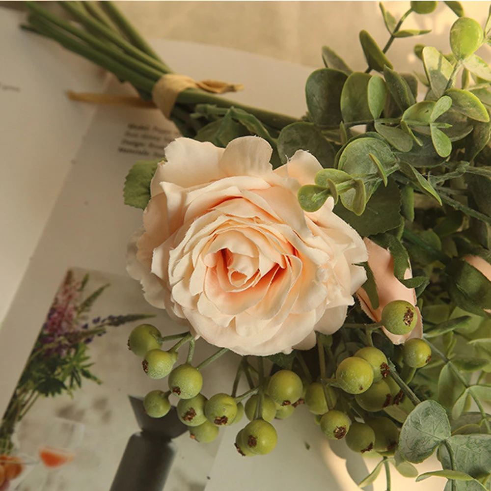 1 голова + 2 почки/шт шелк Сделай Сам искусственная Роза ручной работы цветок эвкалипта Листья Свадебный букет Свадебные дома декоративные искусственные цветы