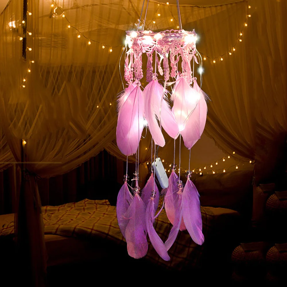 * Ловец снов из перьев со светодиодный подсветкой домашний орнамент подарок