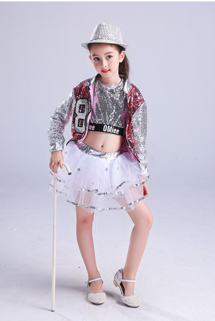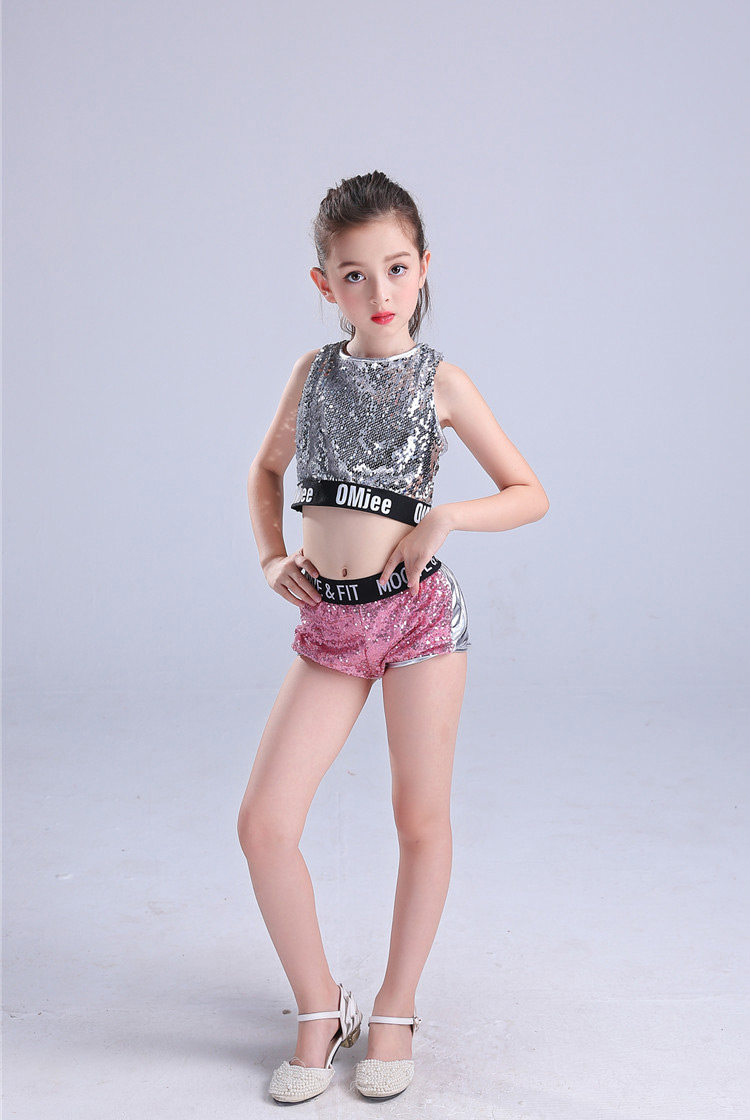 Детский танцор джаза для латинских танцев хип-хоп танцевальные представления с блестками Современные вечерние танцевальные костюмы костюм из трех предметов