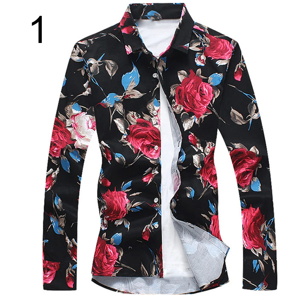 Мужская приталенная рубашка с цветочным принтом и отложным воротником, топ с длинными рукавами, большие размеры
