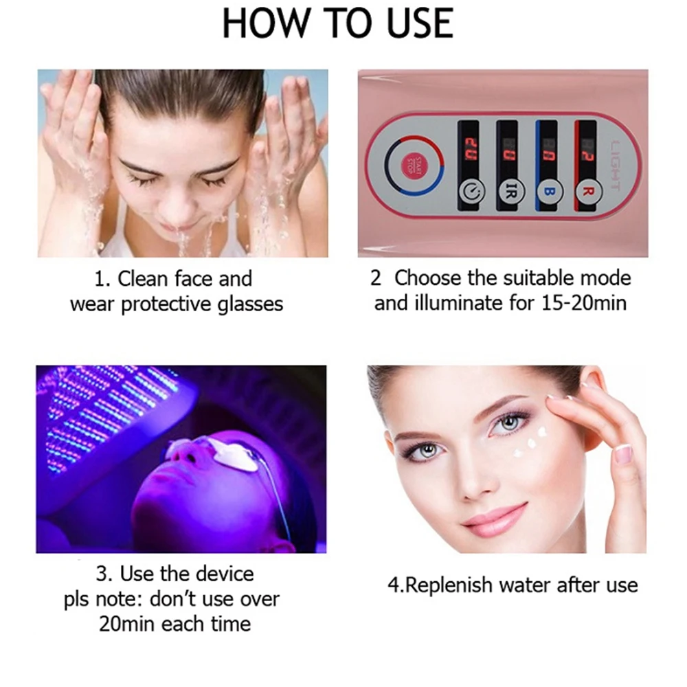 Terapia fotodinalmica (PDT) un tratamiento de la piel basado en la teoria medica. Usiliza una fuente de luz светодиодный модуль cosmético o medicina fotosensible para tratar varios problemas de la piel. Ла luz устройство фотодинамической терапии для está compuesta de 287 tipos de bombillas especiales de identificación médica, красного цвета, 640nm, azul 423nm, Верде 532nm, Амарилло 583nm, 4 ш de onda irradiadas светодиодный médico. La terapia de luz PDT comenzo a curar heridas y aliviar el dolor, utilizado en el tratamiento del acné, cuidado de la piel, instalaciones de recuperación poperatoria, roperatoria La Energia del fotón tiene efectos positivos en las células de la piel. Acelera el crecimiento celular, mejora la generación de colégeno y elastina, promueve la microcirculación sanguinea y mejora el estado general de la piel. Problemas de piel para asentarse: envejeciento, ceñido, lilinas finas, arrugas, poros agrandados, pecas de pigmentación, quemaduras solares, inferación del acné, melancia. Embalaje incluye: 1 x espectrómetro 1 x adaptador de corriente 1 x Руководство по эксплуатации