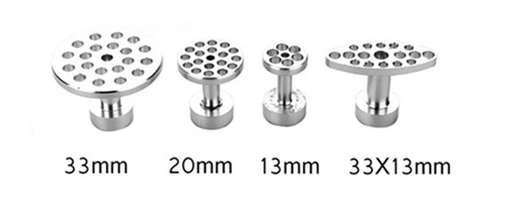 1. Алюминиевый корпус 2. Ручка регулировки из нержавеющей стали 3. Гайки из нержавеющей стали/болты/опорные штыри/зажимы для E-Holding 4. Один винт на верхней части подъемника вмятин используется для регулировки средней высоты подъемника вмятин. 5. Благодаря пескоструйному окислению, гладкой текстуре и выдающимся внешним видом, продукт очень прочный и долговечный. 6. На нижней части вмятин-это силикон, а не обычная резина, которая очень мягкая и не вредна для масляной краски и может быть свернута.