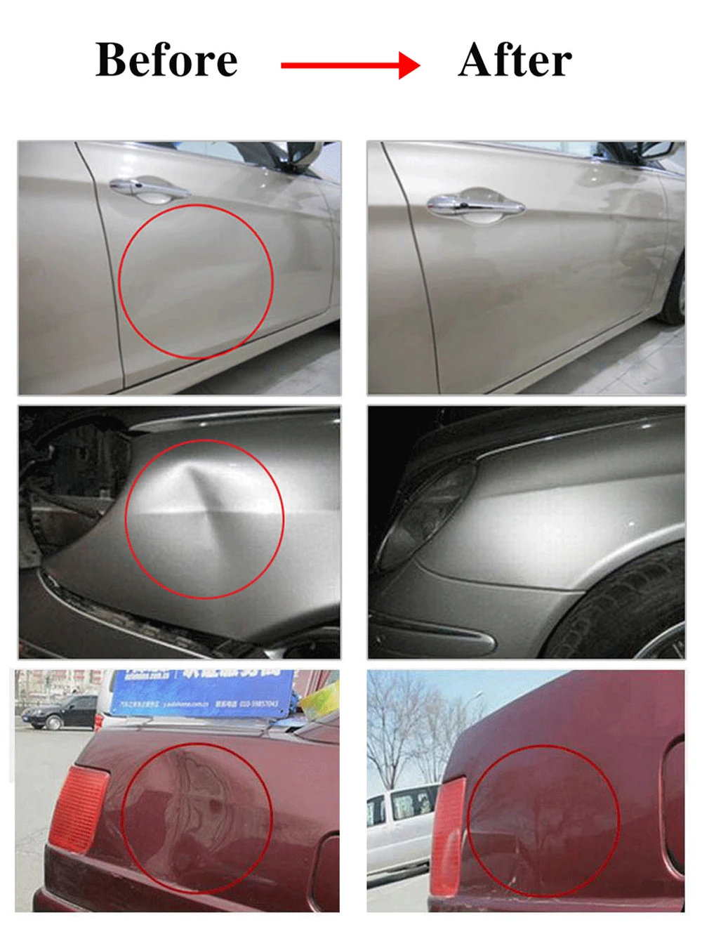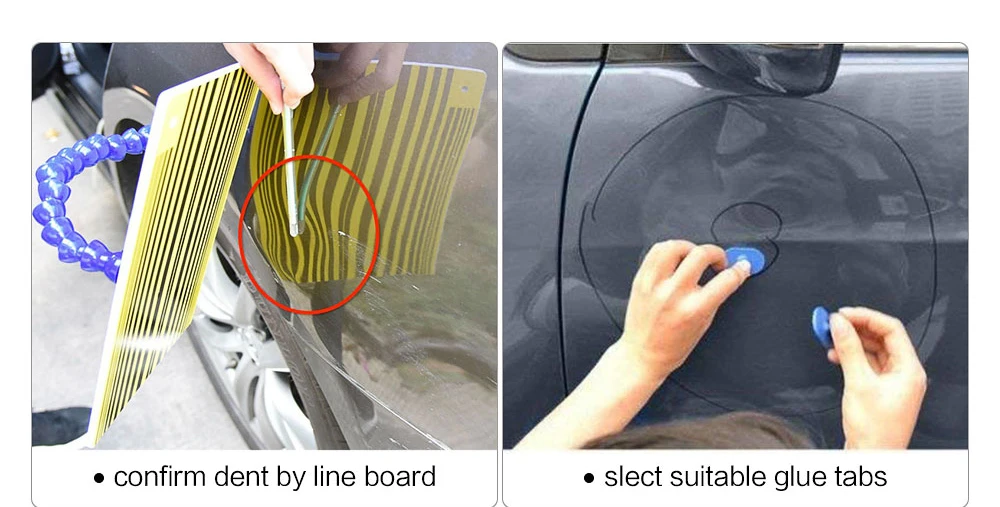 1. Краска на вмятине повреждена, поцарапана, вощеная или покрыта. Не рекомендуется; 2. Вмятина слишком мала, и присоска не соприкасается с вогнутой поверхностью, что приводит к недостаточной адгезии клея и легкому дегазации, и этот инструмент не может быть использован; 3. Углубление-это не железный лист, это стальная пластина или пластик. Депрессия находится в особенно тяжелых местах, таких как луч тела. Рекомендуется обратиться в ремонтный магазин для обслуживания; 4. Алкогольная бутылка в посылка пуста и не содержит алкоголя, потому что алкоголь является запрещенным товаром перевозки; 5. Пожалуйста, используйте спирт или дизельное топливо с чистотой 95 или выше, чтобы удалить клей с поверхности автомобиля.