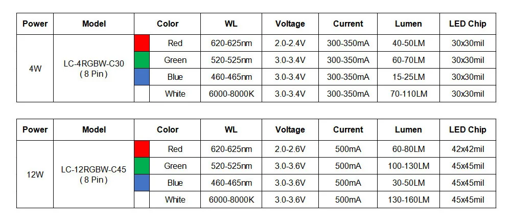 4 Вт 12 Вт RGBW светодиодный чип COB SMD с PCB 1 Вт 3 Вт 8 Pin красный зеленый синий белый полный цвет DIY светодиодный светильник для сцены dj dmx