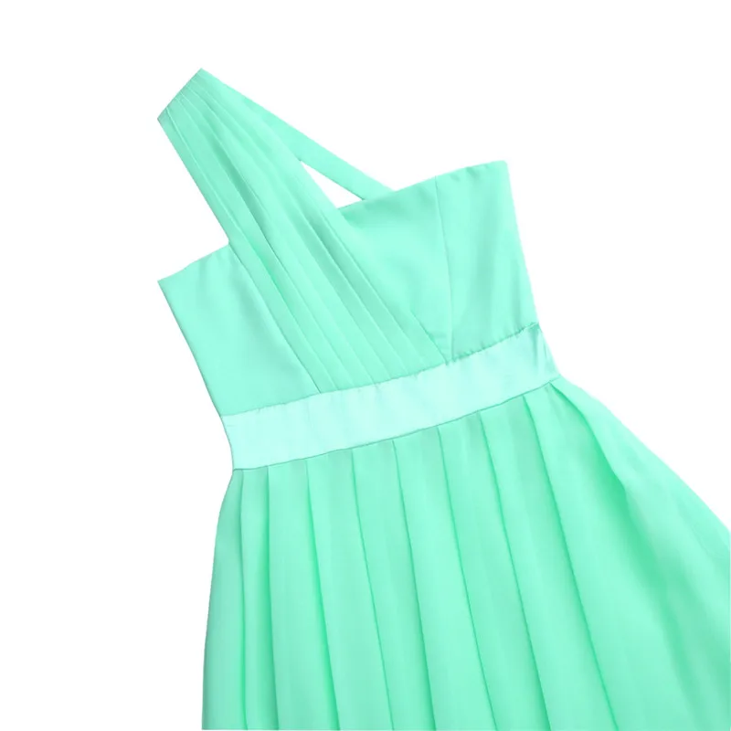 Плиссированное шифоновое платье на одно плечо с цветочным узором для девочек нарядное платье принцессы с высокой талией и вырезом на спине для свадебной вечеринки